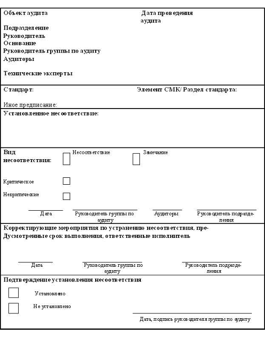 группы по аудиту оформляет листы несоответствия в двух экземплярах, в которых