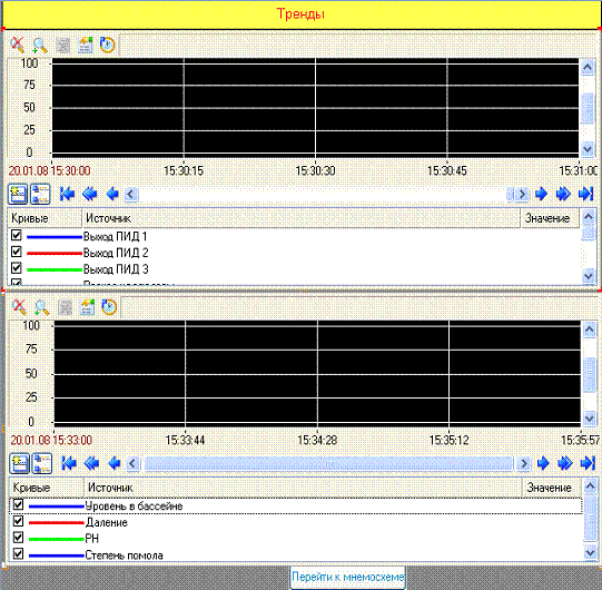 проект АСУ запускается на исполнение в реальном времени. TRACE MODE позволяет