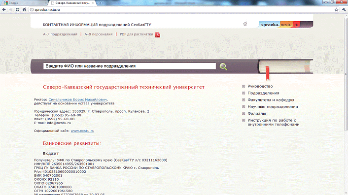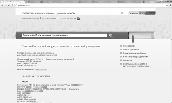 телефонному справочнику СевКавГТУ г. Ставрополь