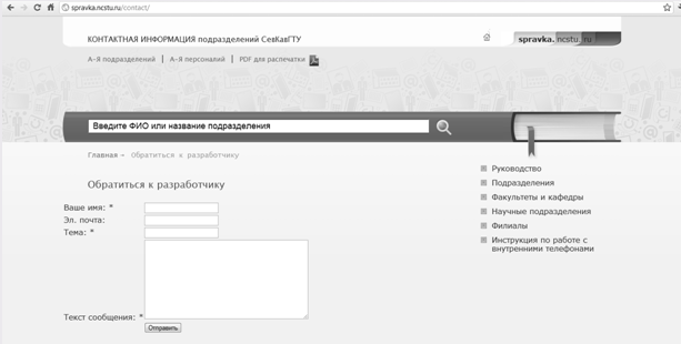 доступа к телефонному справочнику СевКавГТУ, г. Ставрополь