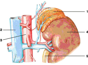правой почки и примыкает к нижней полой вене. Паренхима надпочечных желез