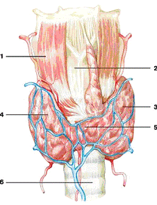 железа прикрывается грудино-щитовидными и грудино-подъязычными мышцами, сбоку к