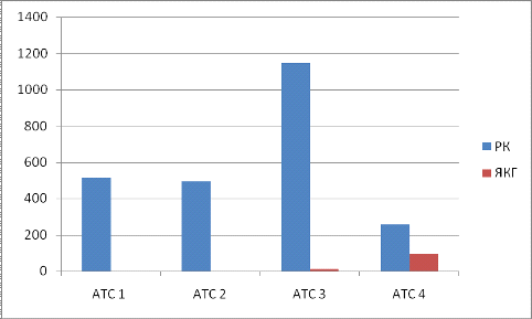 города, анализ распределения потенциальной нагрузки среди районных АТС и