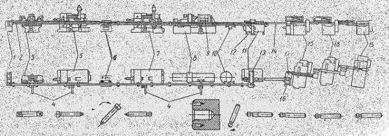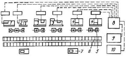 управляющая ЭВМ; 2- участок резки ножницами; 3- участок вырубки; 4- участок