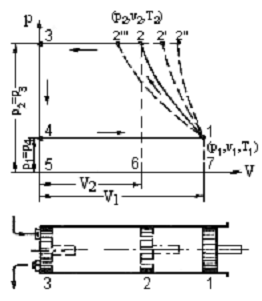 1-2, пока давление в цилиндре не достигнет давления Р2, равного давлению газа в