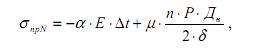 - продольное осевое напряжение определяется по формуле :