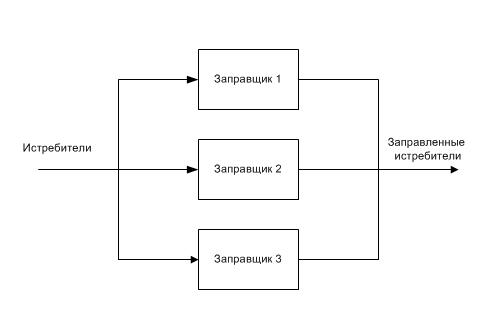 в течение 10±2 мин. Если же все заправщики заняты, то истребитель уходит на
