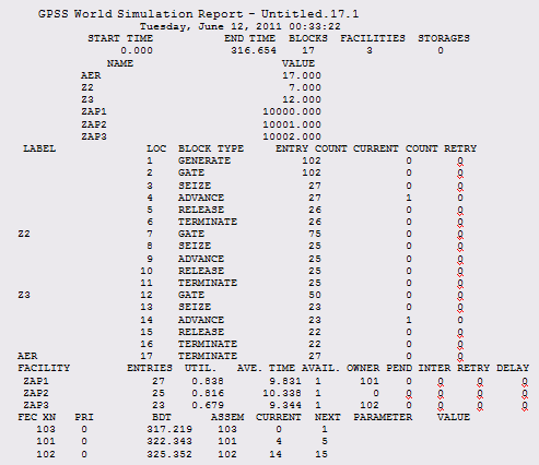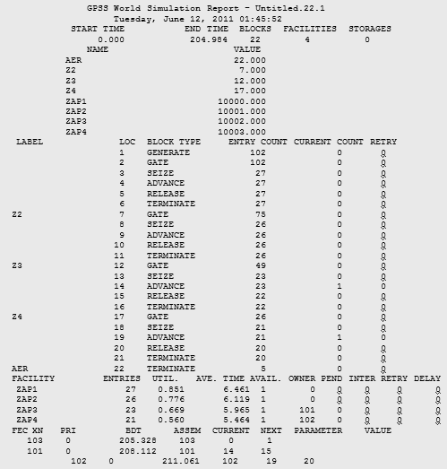 программ GPSS/PC. Система выдает отчет о результатах моделирования, позволяющий