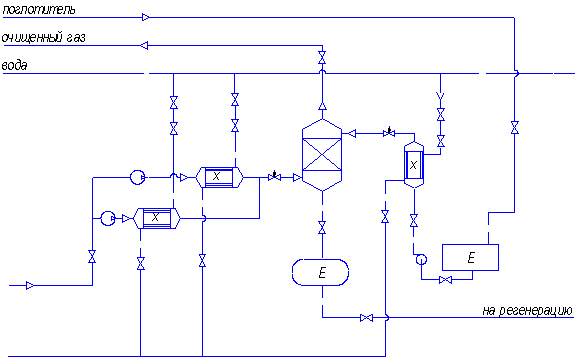 технологической схемы для очистки газа. Была выбрана непрерывная противоточная