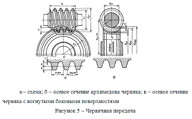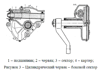 винтовой нарезке, поворачивая вал с сошкой. При вогнутой поверхности червяка