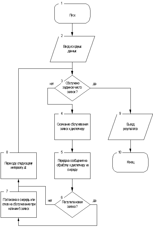 найден. Диспетчер допускает накопление у себя пяти заявок, после чего очередные