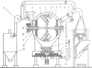 8. В зоне конической части аппарата установлены лопасти-распределители 4. В