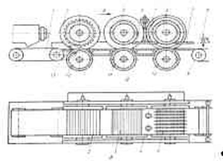 7 и поступают на отводящий транспортер 9, где производиться, поперечная резка