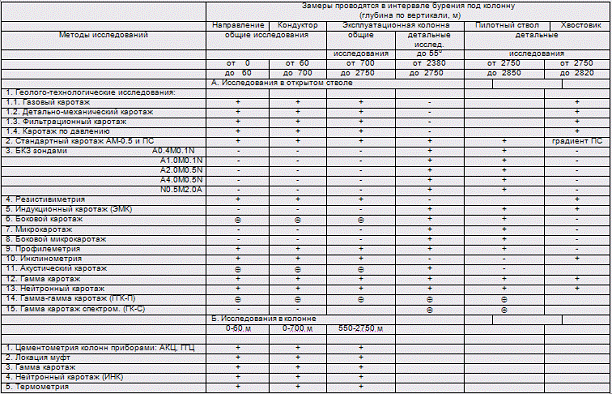 Примечания: 1. + - Промыслово-геофизические исследования проводятся в