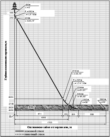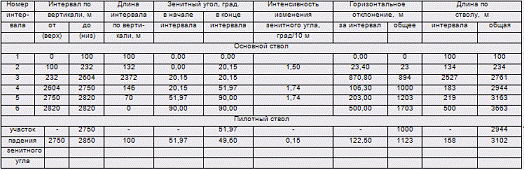 стволу). Второй участок увеличения угла 2604-2820м - по вертикали (2761-3163м -