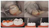 недостаточного снятия тканей, так как при этом край коронки станет нависать,
