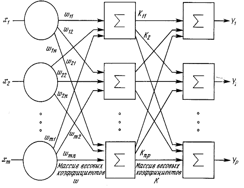 взаимодействия всех нейронов ведется послойно [6,13,15,20,22,29].