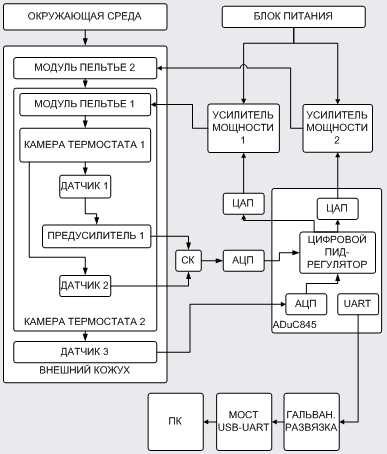 Температура воспроизводится платиновыми терморезисторами в качестве