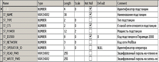 Рисунок 2 - Структура таблицы pyr.stations