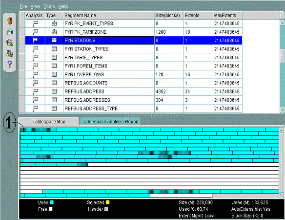 выполнения запросов, табличных пространств, занимаемы базой, изучить исходя из