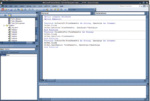 макрокоманд, выполняющих определённые операции, такие как открытие форм или