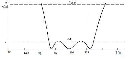 границы ПП и частота fз2 - граница ПН справа; ослабление Amin