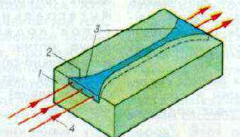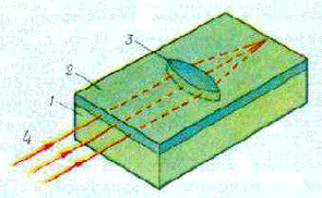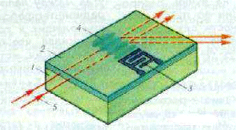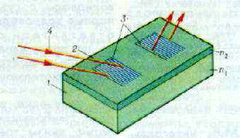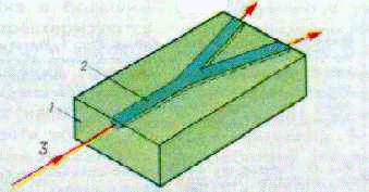 - входной интегрально-оптический волновод, 2 - выходной волновод, 3 -