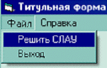 При выборе команды «Решить СЛАУ» в меню титульной формы “Файл →