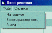 имеет подменю На главное, Ввести размерность, Выход. При выборе Файл → На