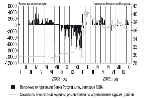 стоимости бивалютной корзины. Направление и объем интервенций внутри плавающего
