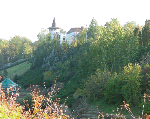 Справа, около входа в парк, за стеной туи находилось здание Музею истории
