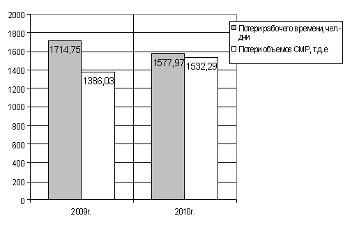 недопоставок материалов увеличение потерь объема СМР на 3,64%, прогулов 8,22%,