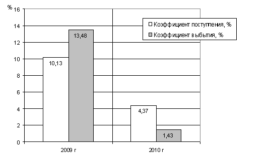 в 2010 г. уменьшились по сравнению с 2009 г. За счет большого сокращения числа