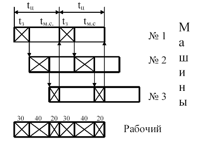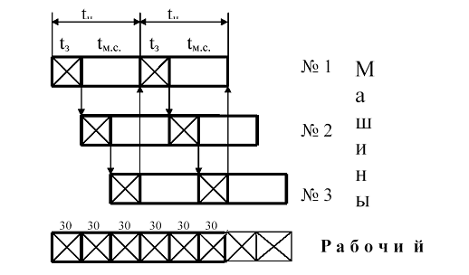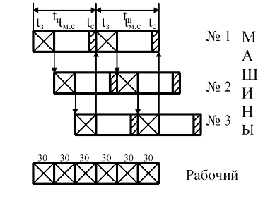 Пусть процесс на машинах № 1, 2, 3 (рис. 1) протекает так, что после 30
