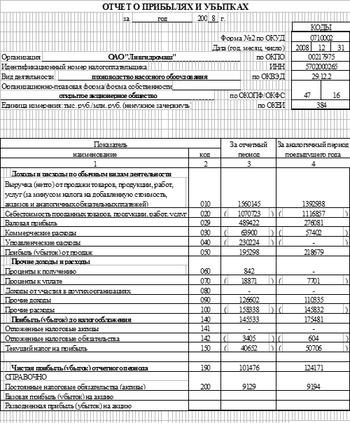 «Ливгидромаш». Он показал, что сумма прибыли снизилась на 86145 тыс.руб.,