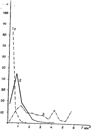 горной области по размерам (%) в пределах соответствующих интервалов, равных