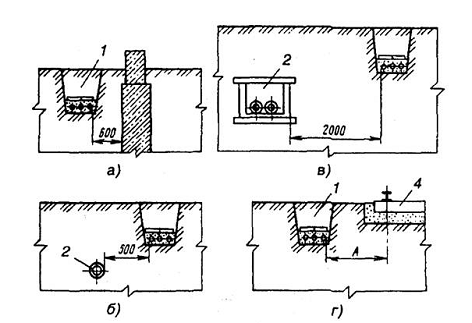 - до теплотрассы; г - до электрифицированной железной дороги; 1 - кабельная