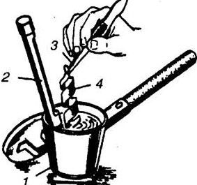 - ковш с парафином; 2- термометр; 3 - пинцет; 4