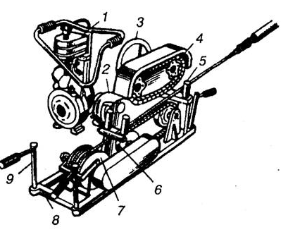 - ролик; 7- лебедка; 8 - рама; 9 - стойка