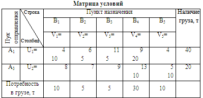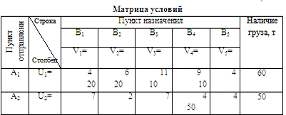 таким образом, чтобы при минимальных затратах был перевезен весь груз при этом