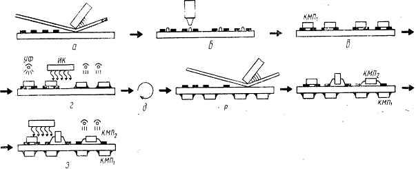 Монтаж компонентов по КМП1 состоит из следующих операций (рис.1):