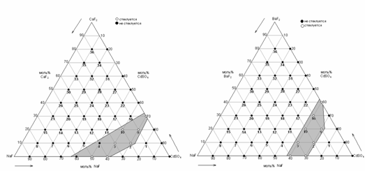 Л.В., Кертман А.В. Стеклообразование в системах NaF - MeF2 - CdSO4 (Me - Ca,