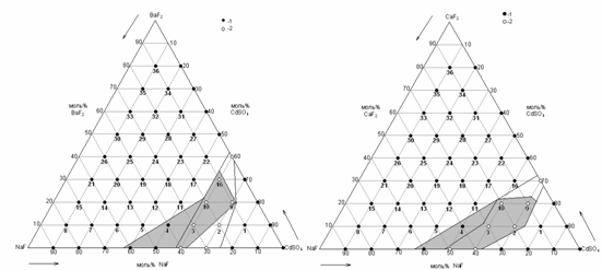 CdSO4; NaF - BaF2; BaF2 - CdSO4.