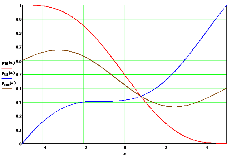 нулю, будет искомое оптимальное значение порога αопт решающего устройства. Найдем этот корень: