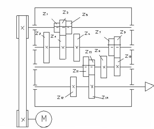 от электродвигателя мощностью №7 кВт через клиноременную передачу и коробку
