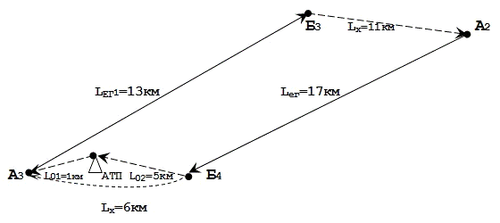 Таблица 2 Расстояния между грузопунктами, км