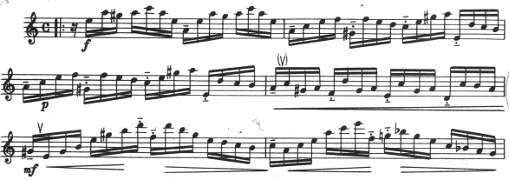 развитая фактура, энергичные акцентированные синкопы, быстрые триольные