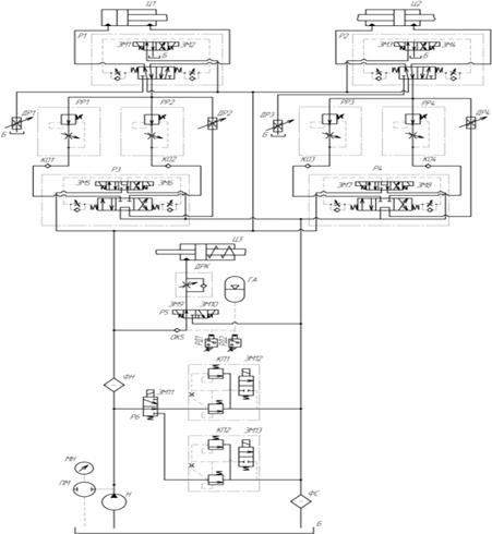 гидравлическая схема, позволяющая осуществить данный цикл работы гидропривода,