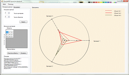 диаграмма, отображающая веса критериев, отложенные на осях, многоугольники