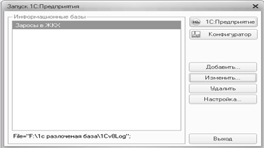 компьютере ЖКХ с конфигурацией "1С:Предприятие" находящейся на